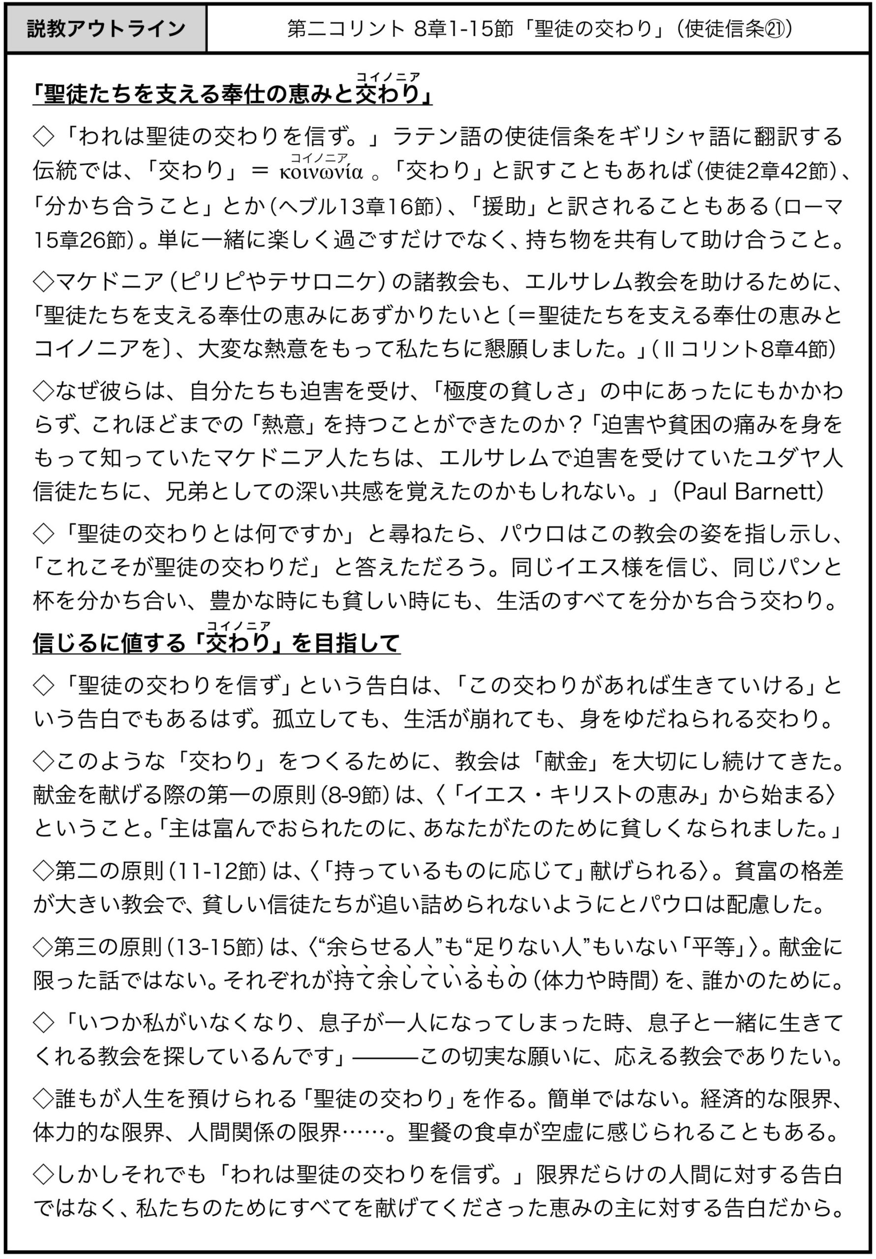 第二コリント8:1-15「聖徒の交わり」(使徒信条㉑|宣愛師)